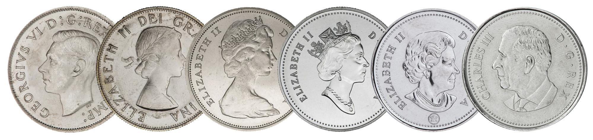 Source: 50 cents, Canada, 1937, 1959, 1965, 1997, 2003, 2023 | 1969.156.3.5, 1978.58.413.5, 1965.141.5, 2002.73.25, 2009.56.18, 2024.5.13